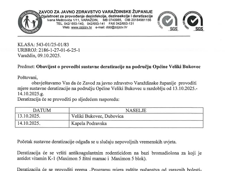 Mole se građani da u svrhu izrade Strategije zelene urbane obnove Općine Veliki Bukovec pristupe ispunjavanju anketnog upitnika koji mogu preuzeti na sljedećoj poveznici. https://forms.gle/BxCyf1wfTGHwjdzB7