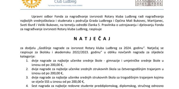 velj142024NovostiObavijesti JUORC LUDBREG – Rotary nagrade za izvrsnost – natječaj Categories: Novosti, Obavijesti JUOod Općina Veliki Bukovec14. veljače 2024. Share this post Share on FacebookShare on Facebook Share on LinkedInShare on LinkedIn Share on WhatsAppShare on WhatsApp Pin itShare on Pinterest Author: Općina Veliki Bukovec Post navigationPreviousPrevious post:Natječaj za dodjelu stipendija Listu reda prvenstvaNextNext post:JAVNI NATJEČAJ za dodjelu financijskih potpora za programe organizacija civilnog društva u 2024. godiniRelated PostsJAVNI NATJEČAJ – zimska služba12. studenoga 2025.ANKETNI UPITNIK – Strategija zelene urbane obnove Općine Veliki Bukovec28. listopada 2025.DODJELA STIPENDIJA UČENICIMA S PODRUČJA OPĆINE VELIKI BUKOVEC ZA ŠKOLSKU GODINU 2025./2026.13. listopada 2025.Obavijest o provođenju sustavne deratizacije Veliki Bukovec9. listopada 2025.OBAVIJEST – PRIJAVA ŠTETE OD SUŠE ZA OSIGURANE POVRŠINE13. kolovoza 2025.JAVNU RASPRAVU o Prijedlogu izmjene i dopune Prostornog plana uređenja Općine Veliki Bukovec8. kolovoza 2025.