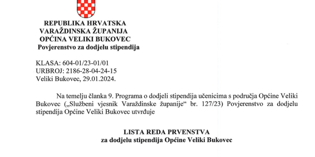 DODJELA STIPENDIJA UČENICIMA S PODRUČJA OPĆINE VELIKI BUKOVEC ZA ŠKOLSKU GODINU 2025./2026.13. listopada 2025.