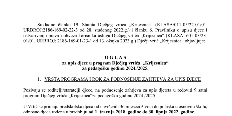 tra242024NovostiObavijesti JUOOglas za upis djece u ped. godinu 2024.-2025 Categories: Novosti, Obavijesti JUOod Općina Veliki Bukovec24. travnja 2024. Share this post Share on FacebookShare on Facebook Share on LinkedInShare on LinkedIn Share on WhatsAppShare on WhatsApp Pin itShare on Pinterest Author: Općina Veliki Bukovec Post navigationPreviousPrevious post:OBAVIJEST O DODJELI JEDNOKRATNE NOVČANE POMOĆI ZA NOVOROĐENU DJECUNextNext post:Javni poziv za predlaganje kandidata za dodjelu javnih priznanja Općine Veliki Bukovec u 2024. godiniRelated PostsJAVNI NATJEČAJ – zimska služba12. studenoga 2025.ANKETNI UPITNIK – Strategija zelene urbane obnove Općine Veliki Bukovec28. listopada 2025.DODJELA STIPENDIJA UČENICIMA S PODRUČJA OPĆINE VELIKI BUKOVEC ZA ŠKOLSKU GODINU 2025./2026.13. listopada 2025.Obavijest o provođenju sustavne deratizacije Veliki Bukovec9. listopada 2025.OBAVIJEST – PRIJAVA ŠTETE OD SUŠE ZA OSIGURANE POVRŠINE13. kolovoza 2025.JAVNU RASPRAVU o Prijedlogu izmjene i dopune Prostornog plana uređenja Općine Veliki Bukovec8. kolovoza 2025.