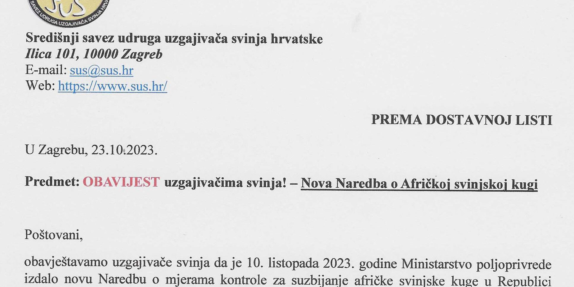 lis252023NovostiObavijest za uzgajivače svinja – Nova Naredba o afričkoj svinjskoj kugi Category: Novostiod Općina Veliki Bukovec25. listopada 2023. Share this post Share on FacebookShare on Facebook Share on LinkedInShare on LinkedIn Share on WhatsAppShare on WhatsApp Pin itShare on Pinterest Author: Općina Veliki Bukovec Post navigationPreviousPrevious post:Obavijest HZMO – isplata jednokratnog novčanog primanja korisnicima mirovine radi ublažavanja posljedica rasta troškova životaNextNext post:Javni natječaj za obavljanje komunalne djelatnosti održavanja nerazvrstanih cesta na području Općine Veliki Bukovec u zimskim uvjetima- zimska službaRelated PostsJAVNI NATJEČAJ – zimska služba12. studenoga 2025.ANKETNI UPITNIK – Strategija zelene urbane obnove Općine Veliki Bukovec28. listopada 2025.DODJELA STIPENDIJA UČENICIMA S PODRUČJA OPĆINE VELIKI BUKOVEC ZA ŠKOLSKU GODINU 2025./2026.13. listopada 2025.Obavijest o provođenju sustavne deratizacije Veliki Bukovec9. listopada 2025.OBAVIJEST – PRIJAVA ŠTETE OD SUŠE ZA OSIGURANE POVRŠINE13. kolovoza 2025.JAVNU RASPRAVU o Prijedlogu izmjene i dopune Prostornog plana uređenja Općine Veliki Bukovec8. kolovoza 2025.